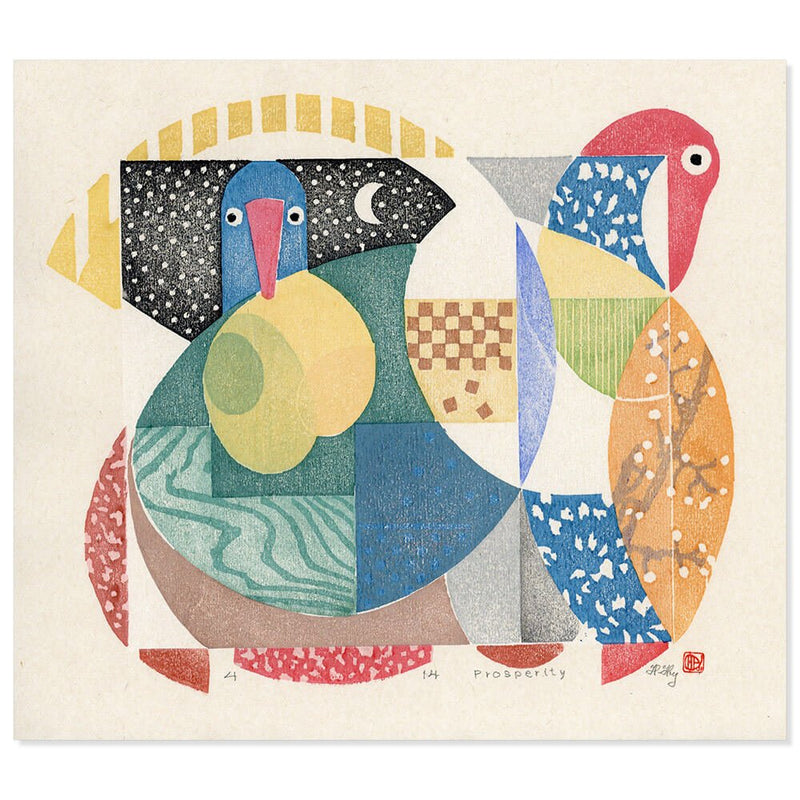 Unieke houtblokprints (Mokuhanga; Japanse techniek voor houtblok printen) (gemengde techniek). Mokuhanga is het Japanse woord voor drukken waarbij met de houtblokdruktechniek met waterverf gebruikt wordt, die in de Edo-periode is ontwikkeld. Moku betekent hout en hanga kan worden vertaald als drukken.